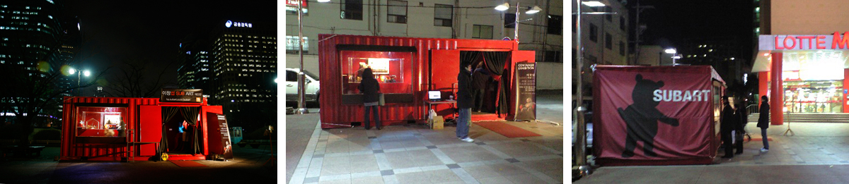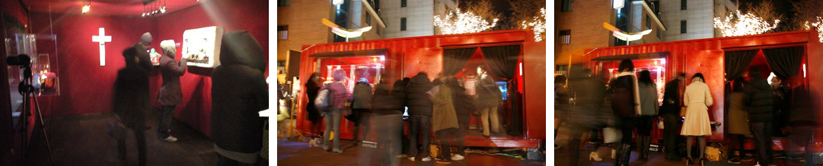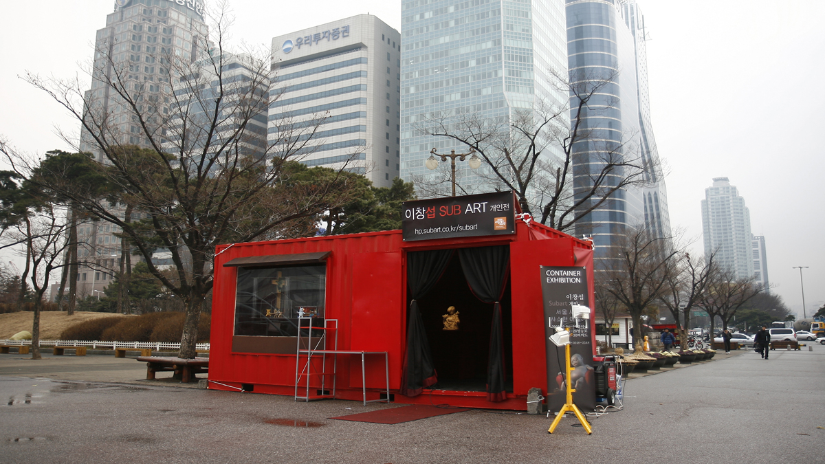 I faced a lot of administrative difficulties trying to put together this exhibition; spaces were booked and cancelled a week before the show, the truck transporting the shipping container could not move during weekdays, and certain places did not allow trucks to enter in the first place – al of this in 15 degrees subzero weather. Despite this, I successfully moved the exhibition around to different spots with the largest floating population. Over 4,500 visitors came to the exhibition, and I received a lot of helping hands. I could not spend the holiday season with my family from having to guard the exhibition, but seeing the families enjoy my works and couples warming themselves in the exhibition space gave me solace. I was met with warmth from a lot of people, but I remember one particular encounter with a grandmother who came to the exhibition in Yeongdeungpo. She held my hands tightly and asked me to ‘keep making exhibitions for the working class,’ and it made me want to continue making work that brings itself to the public.