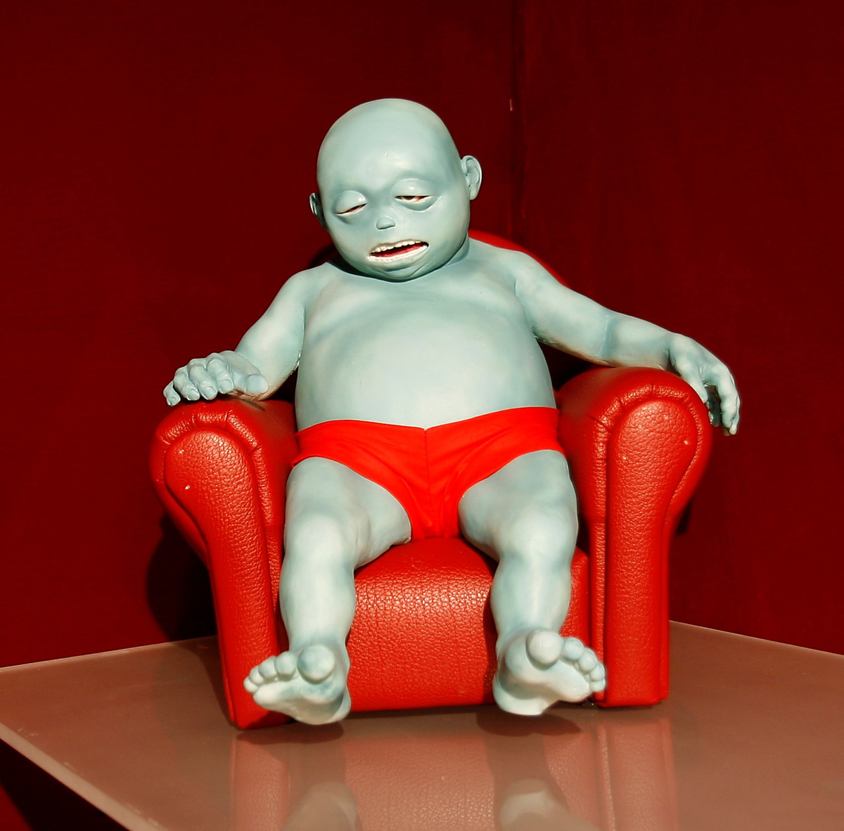 A smaller figure of a man with these sons in a sauna was exhibited facing the larger solitary middle-aged man figure. This work provided a space where the visitor could take pictures, sitting next to this large man, while the figure overlooked the vision of his dream.