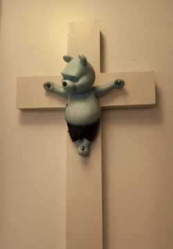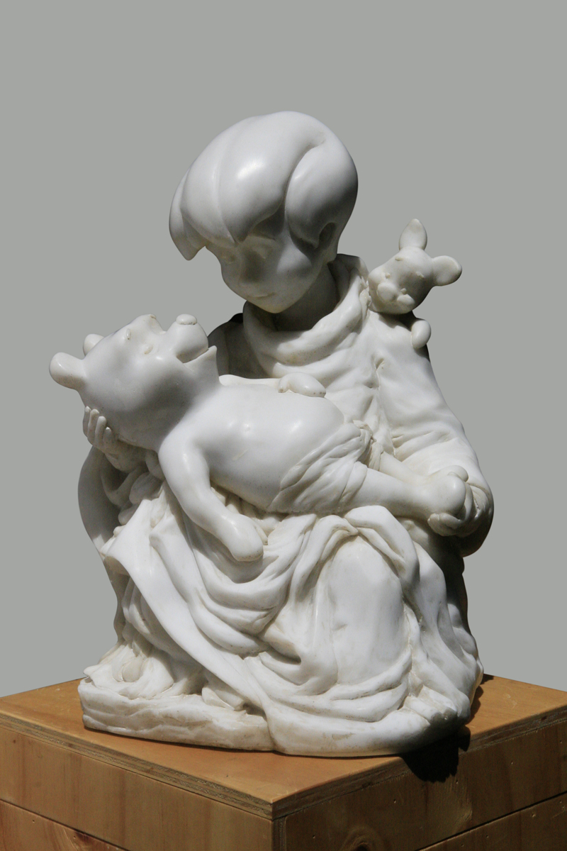 “Pooh Pieta”는 피에타 형태의 어머니 또는 예수가 우리에게 주는 큰 사랑을 통해, 가족의 품에 안겨 있던 어린 시절의 가장 행복한 추억을 표현합니다. 푸우와 피터는 내가 어릴 때 푸우 만화를 보며 상상했던, 푸우가 피터로부터 받는 사랑으로 가득 찬 모습을 통해 작품에서 나오는 사랑의 감정을 강조합니다.
