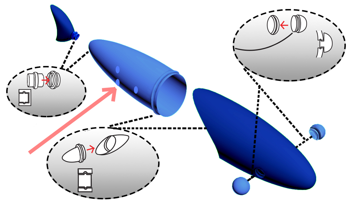 - A robust yet flexible connection system was required between the fish pieces and the whale frame during assembly. This system needed to allow for adjustments in both front-to-back and top-to-bottom directions for installation, ensuring that each component securely locked into place.