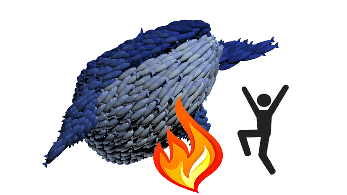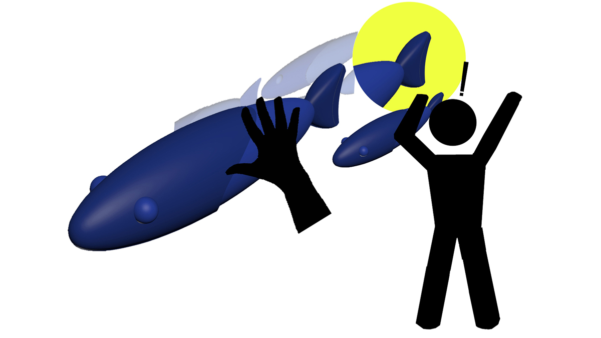 I was initially inspired by schools of mackerel that come together to form a larger fish to overcome predators and other adversities. I began by sketching this idea with a pencil, and then I moved on to 3D modeling in Autodesk 3DS MAX. To create the dynamic and lifelike appearance of a school of fish forming the shape of a large whale and moving along a curved path, I ran simulations after completing the modeling.