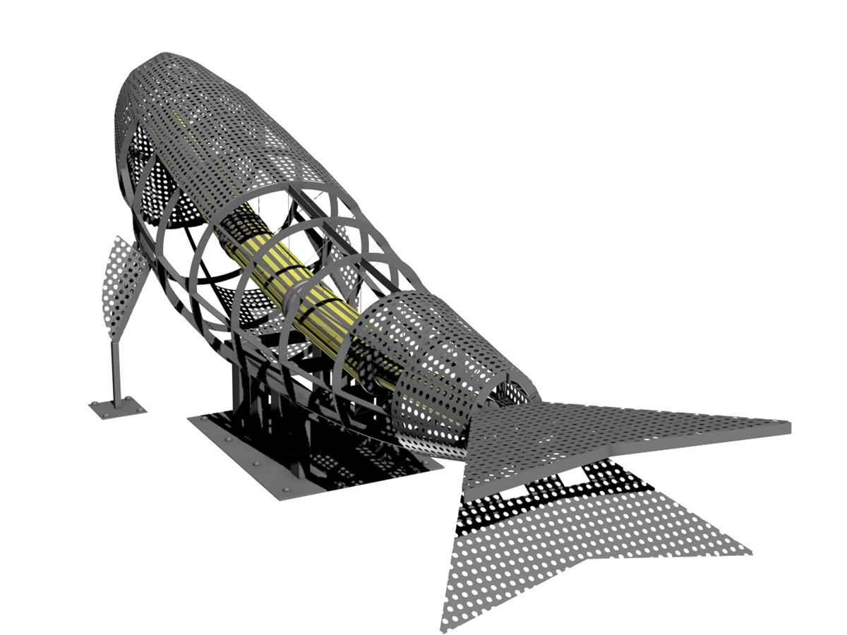 - Each fish sculpture, cast from a single mold, needed to be adjustable to twist or turn the head and tail according to the position within the overall whale skeleton.