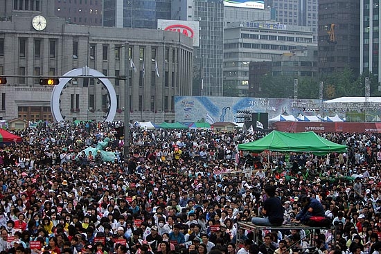 “Farmer Choi and His Cow” at a rally in Seoul Square with over one million attendees