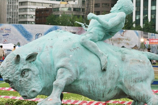I received a call inviting me to exhibit my sculpture at City Hall Square. It turned out to be a rally demanding strengthened quality control on imported beef and the protection of Korean-produced beef. I double-checked the sculpture, loaded it onto a truck, and headed to City Hall Square. The rally turnout was larger than I had anticipated.
