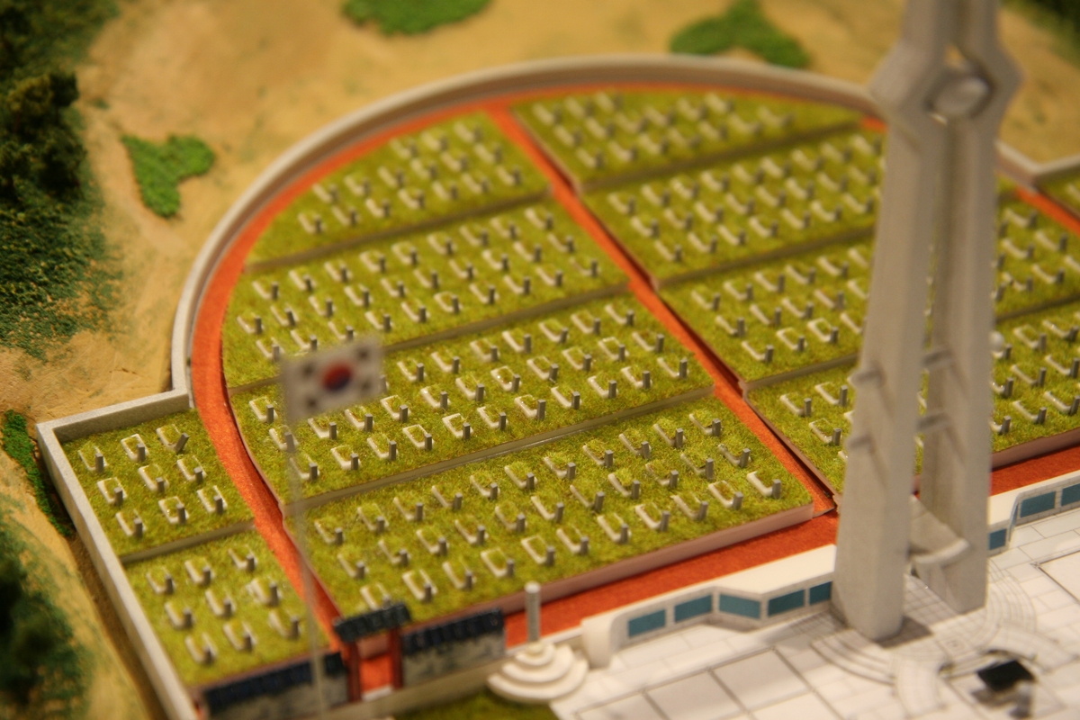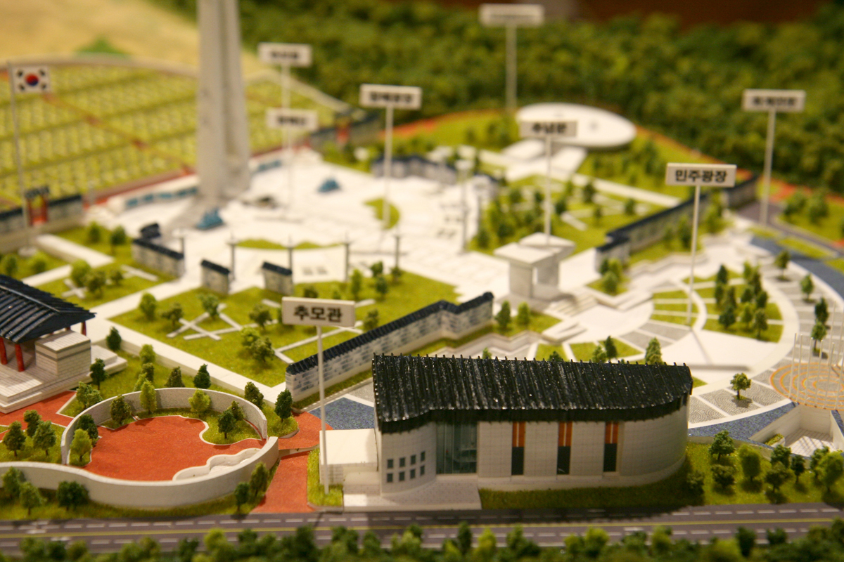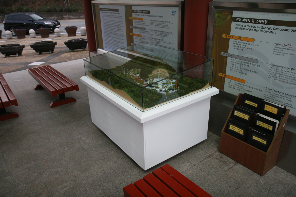 This miniature model represents the May 18 Democratic Cemetery, honoring those who sacrificed their lives from May 18 to 27, 1980, in resistance against military dictatorship, martial law, and for the release of democratic leaders. The model commemorates the democratization movement dedicated to these ideals.