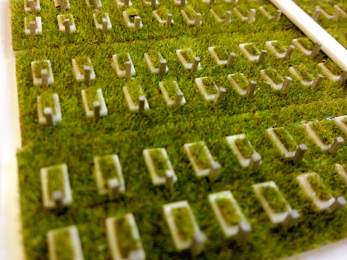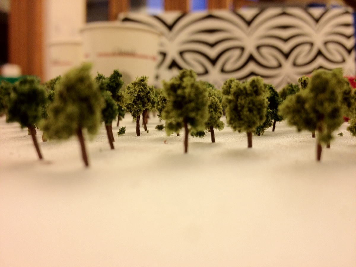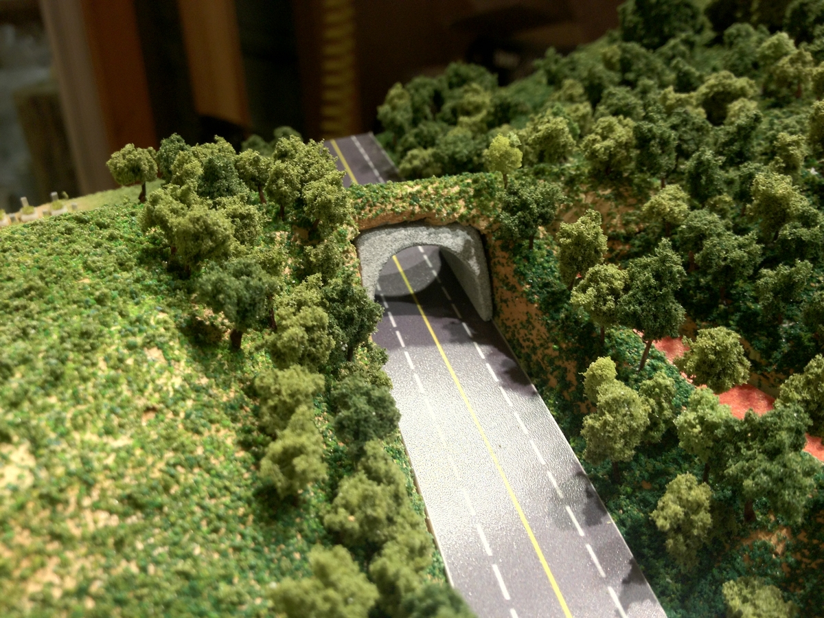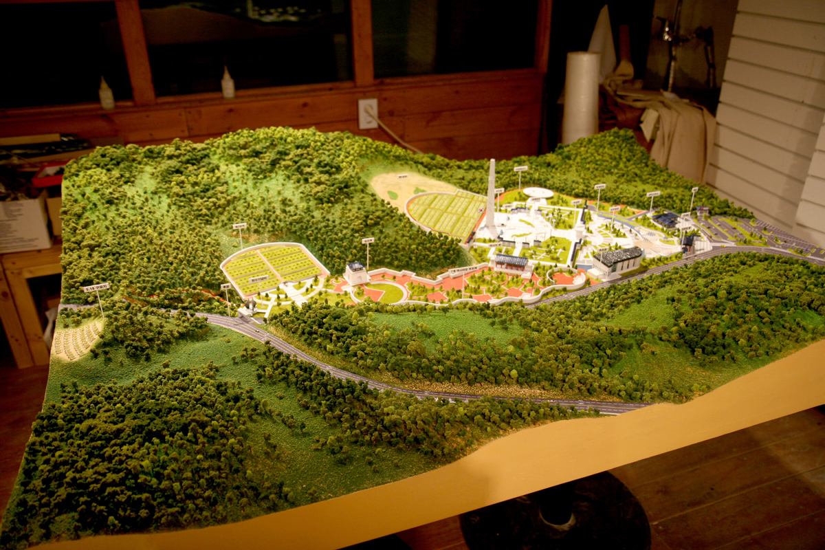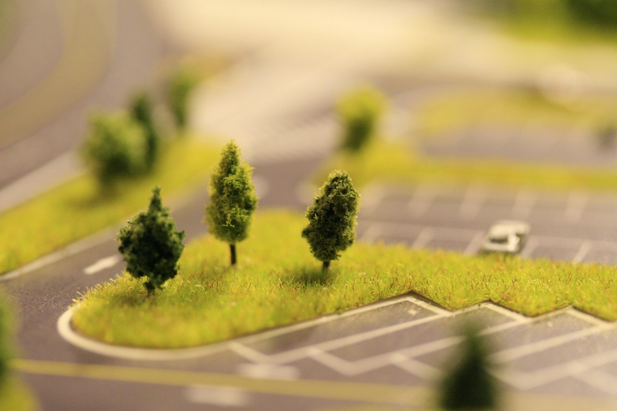 Miniature Model Drawing: Reduced building scales to 500:1 and terrain scales to 600:1 to create detailed miniature drawings.