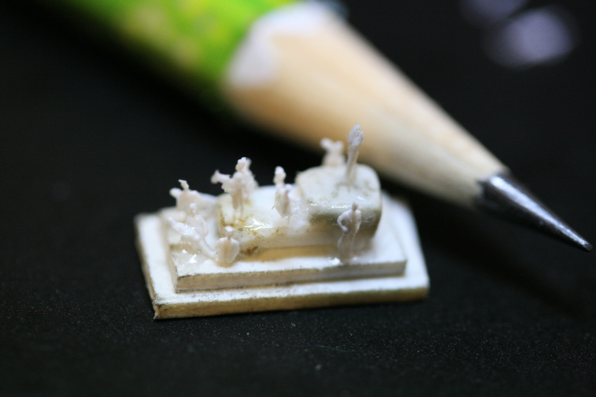 There were two statues, but the size was less than 10mm in size. It was a sculpture with many democratized warriors within 5X2mm. One person was a small size of about 1.5mm, but it was made as close as possible to the action of a person.