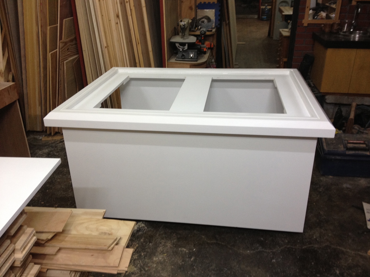 a media table, a media installation, sculptures, wood, steel, and other interior materials