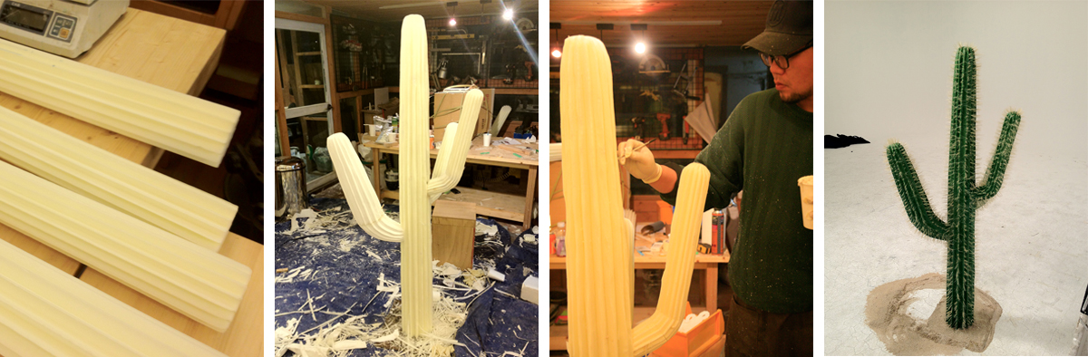 To enhance the comedic effect, we created an exaggerated cactus prop using bubble-free rigid urethane and gold foam.