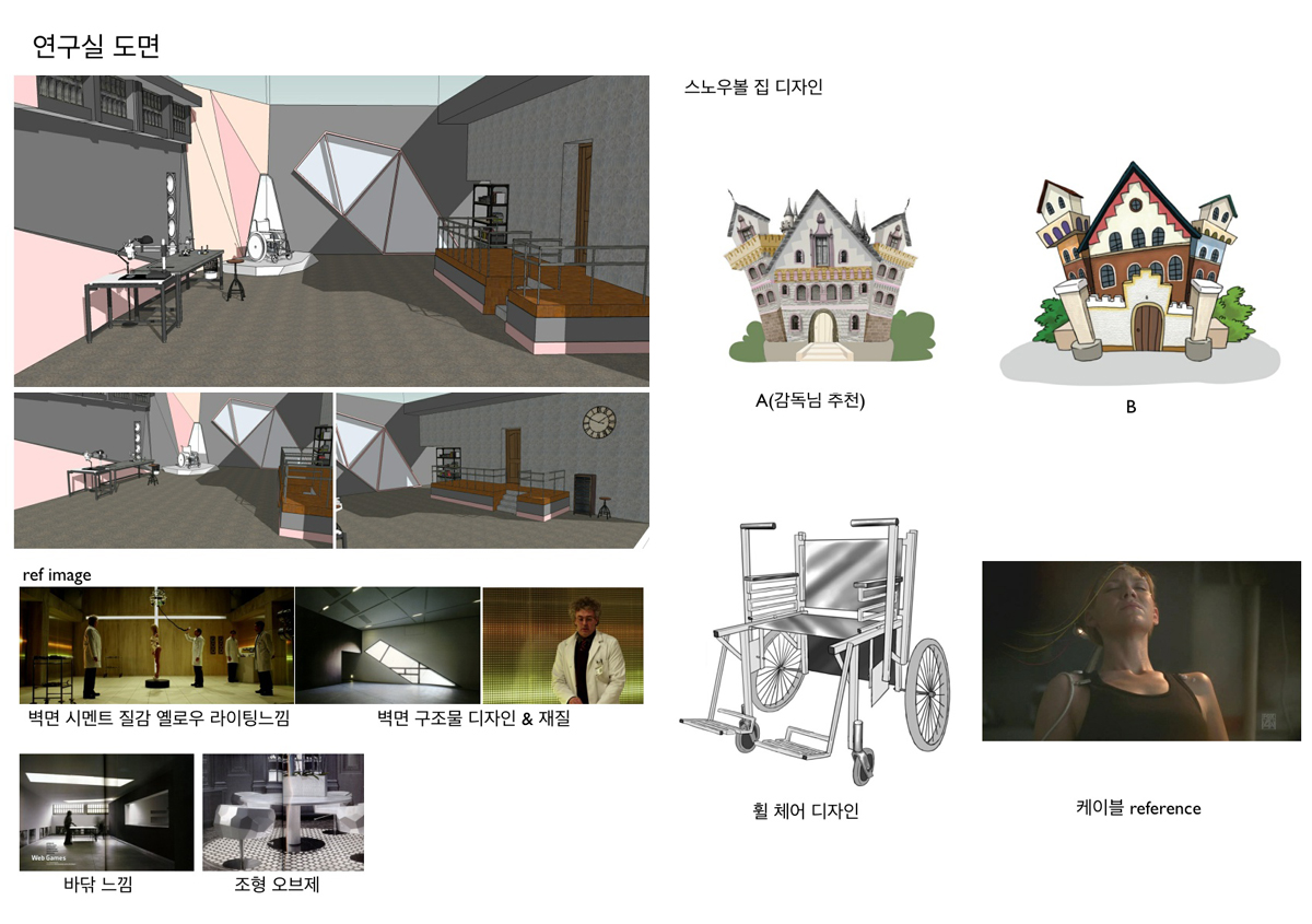I paid careful attention to the drawings during the wheelchair production. While the design might be uncomfortable for a real patient to sit in, it was crafted with the height and dimensions of the metal welding to ensure it did not look awkward in a seated position, considering it was made for filming purposes. Additionally, it was designed to complement the storyboard with appropriate lighting and colors.