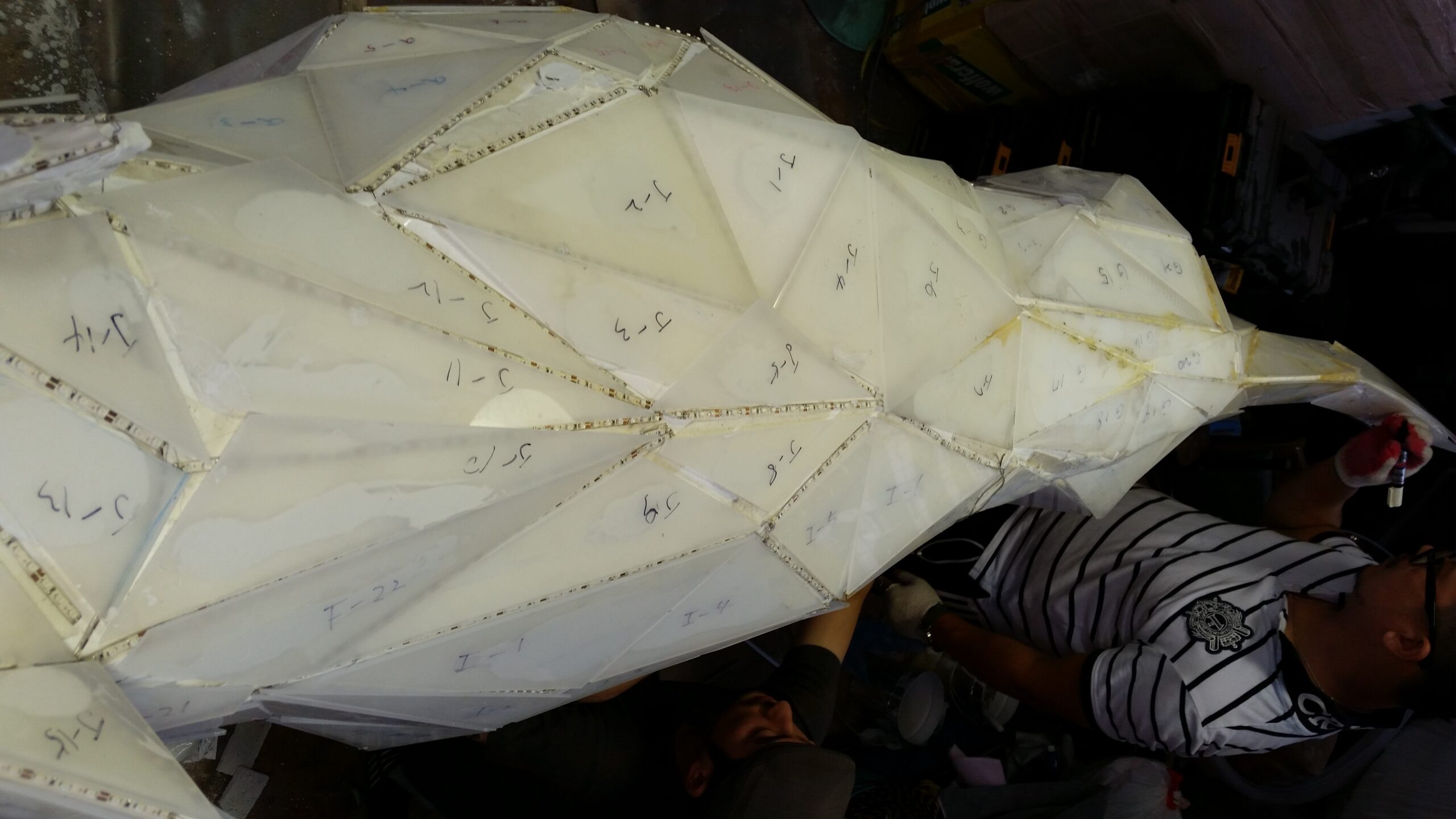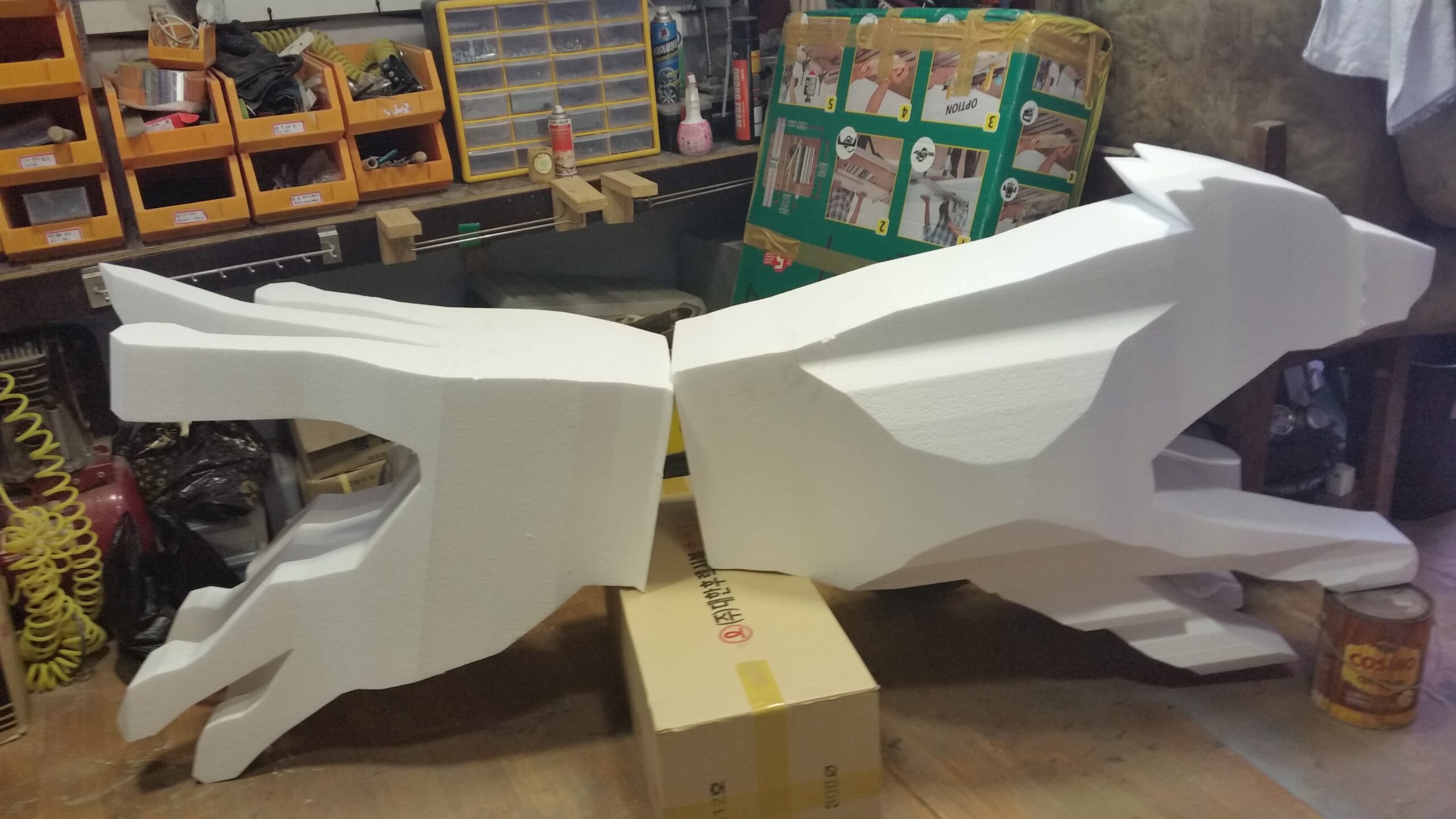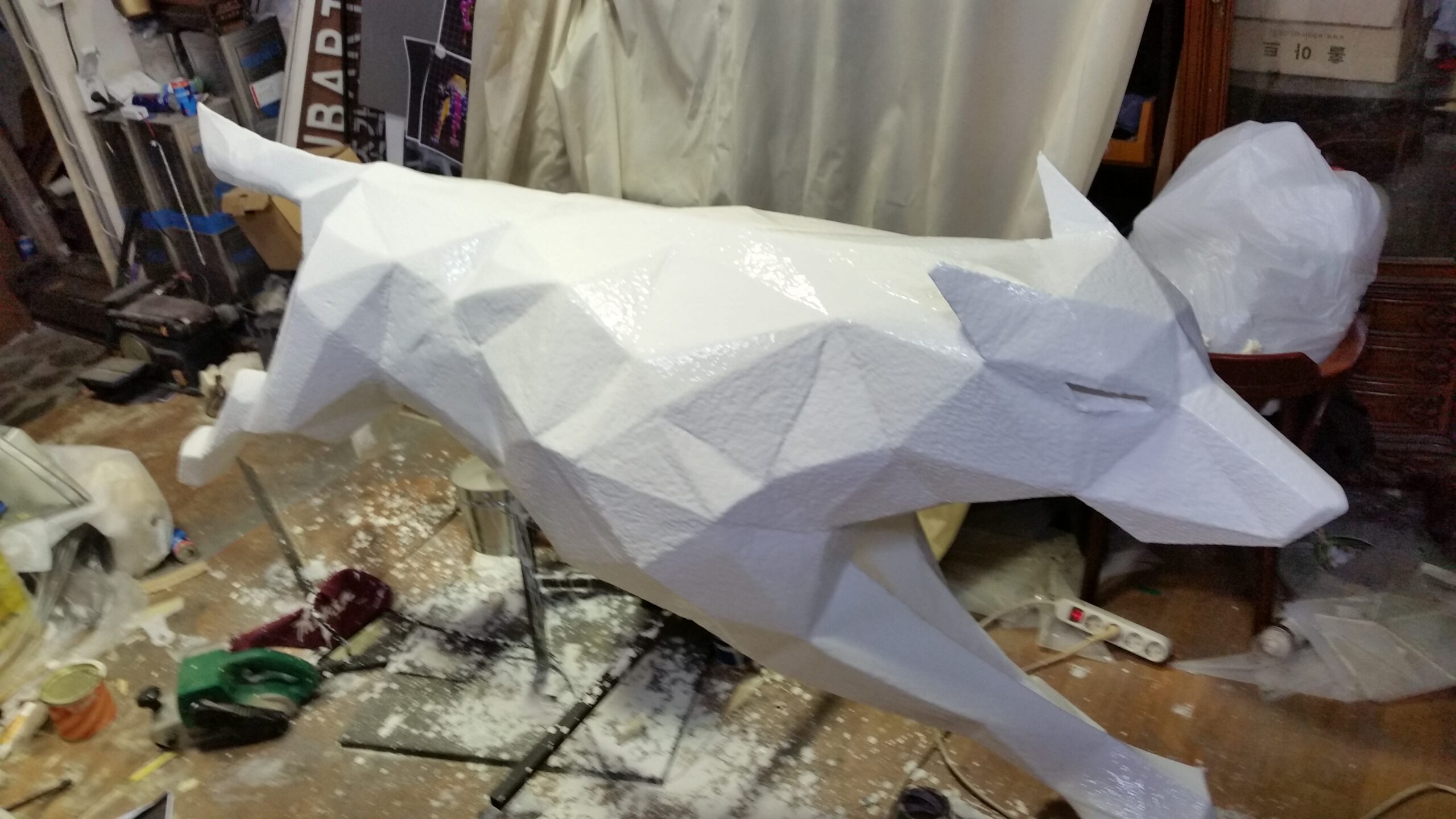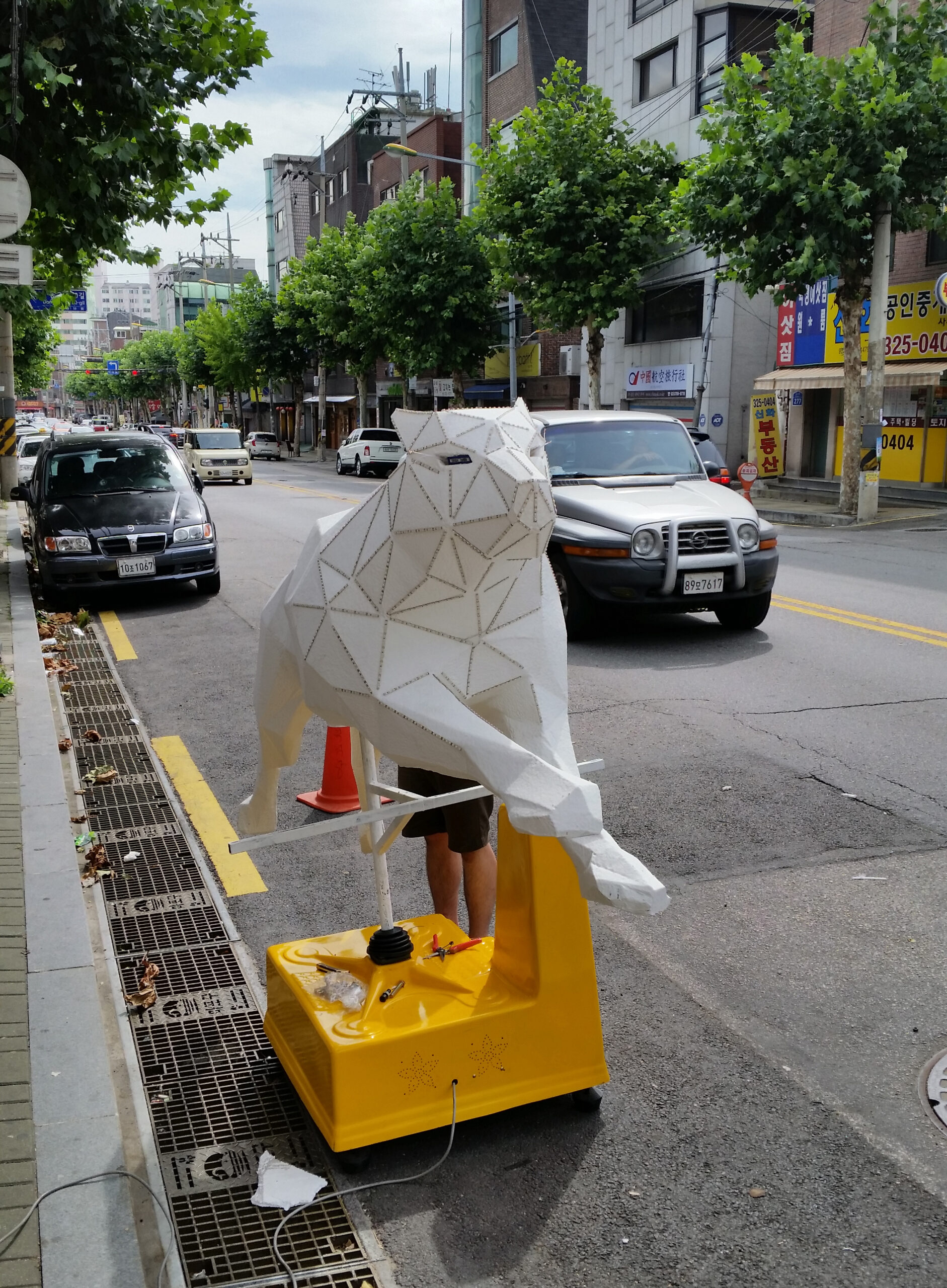 Since the agency wanted to show a dog having strong image in the music video, this automatic movement and light made the singer’s song express. At the production planning stage of this, I considered the dog’s strength because of the safety of the person riding it. First step of process was to make 3D file and print a small dog to find accurate form to carve.