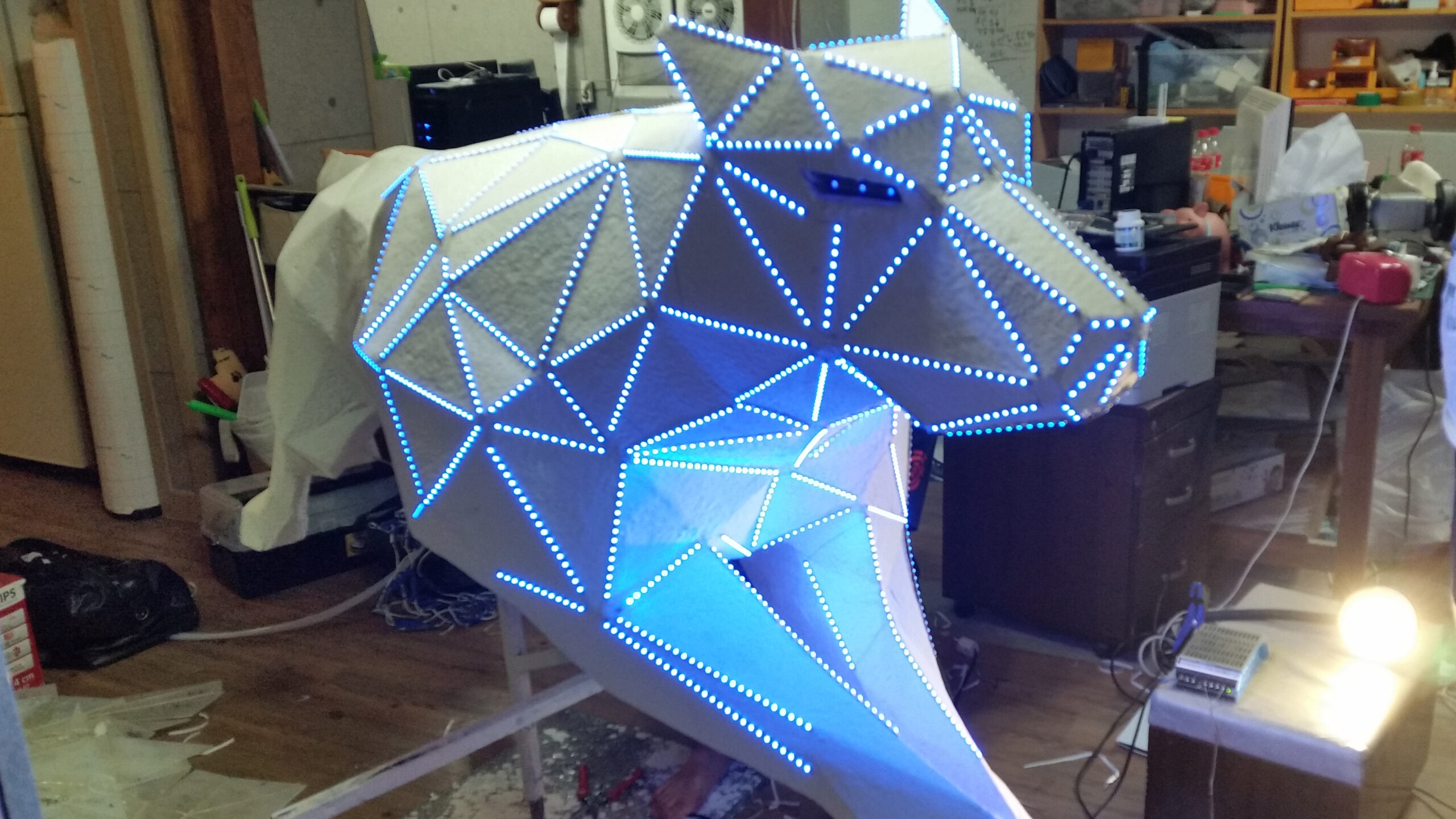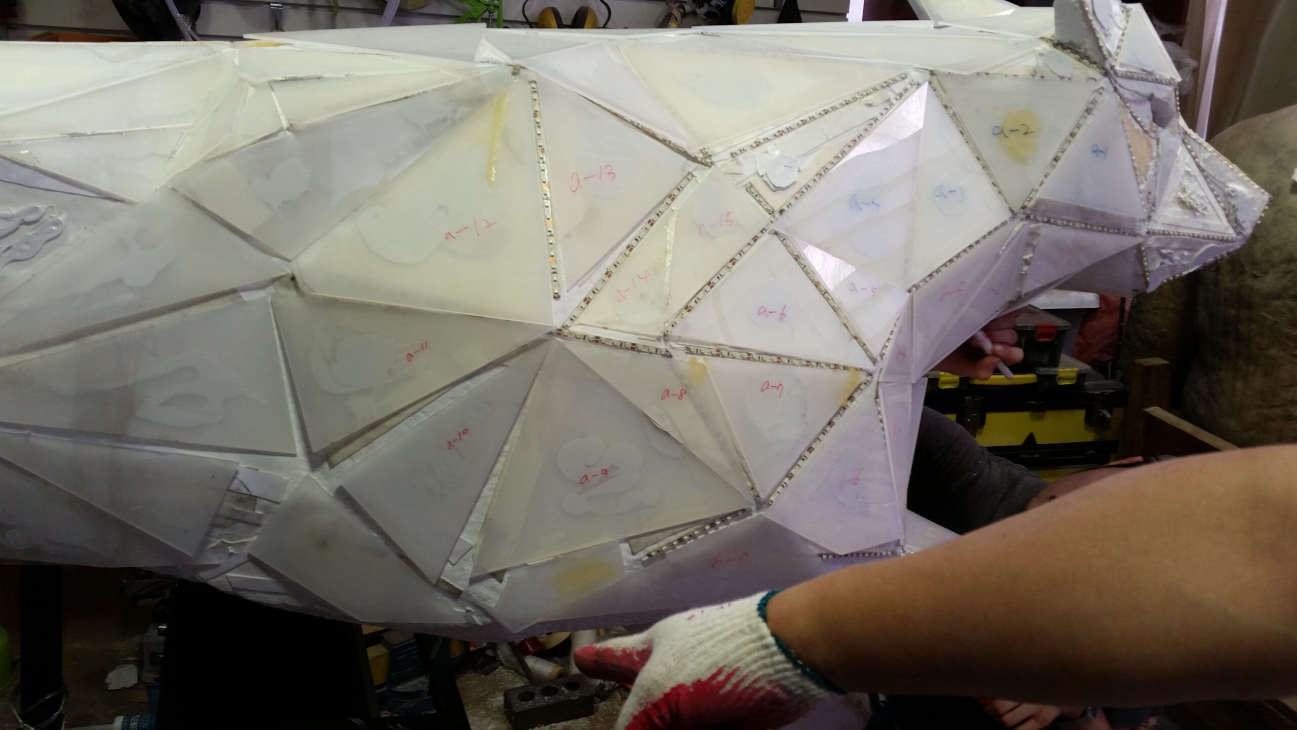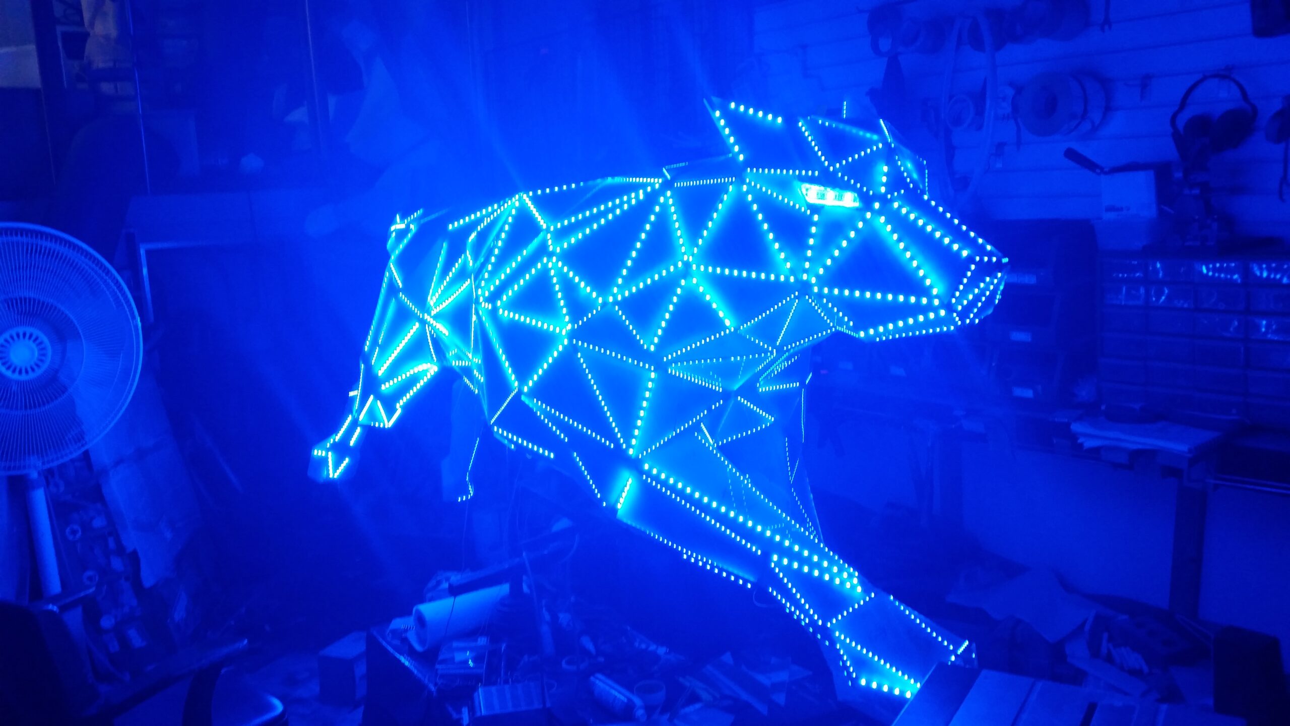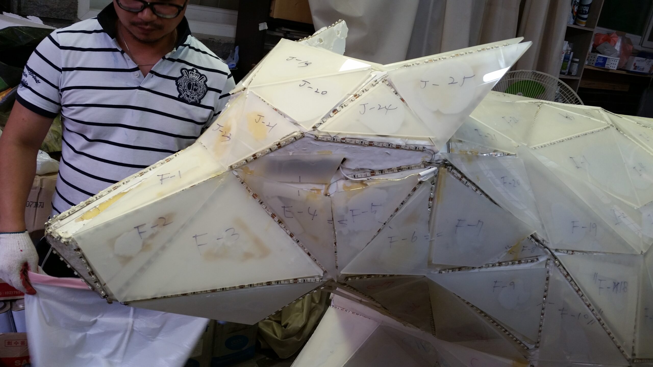 Since the agency wanted to show a dog having strong image in the music video, this automatic movement and light made the singer’s song express. At the production planning stage of this, I considered the dog’s strength because of the safety of the person riding it. First step of process was to make 3D file and print a small dog to find accurate form to carve.