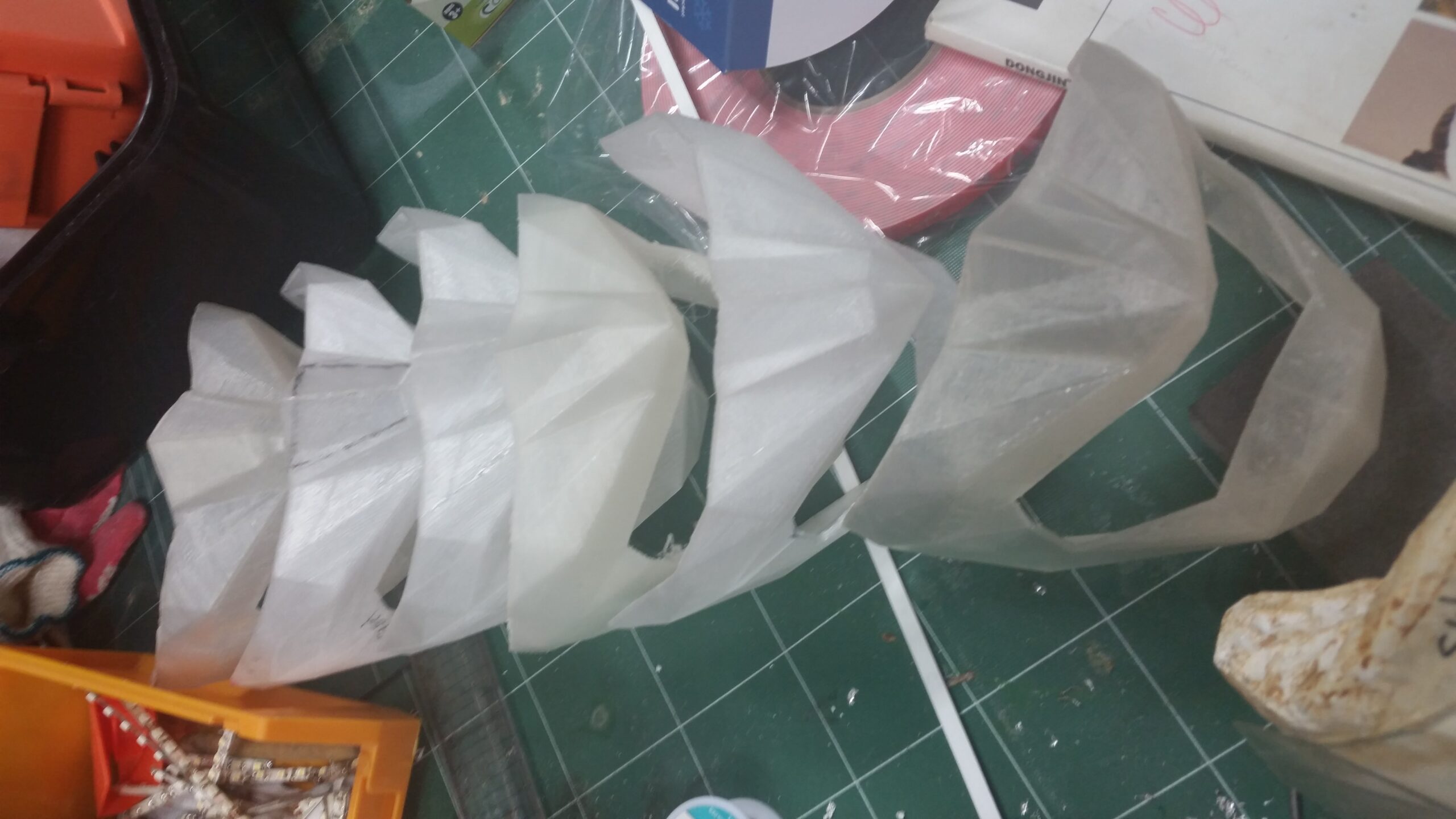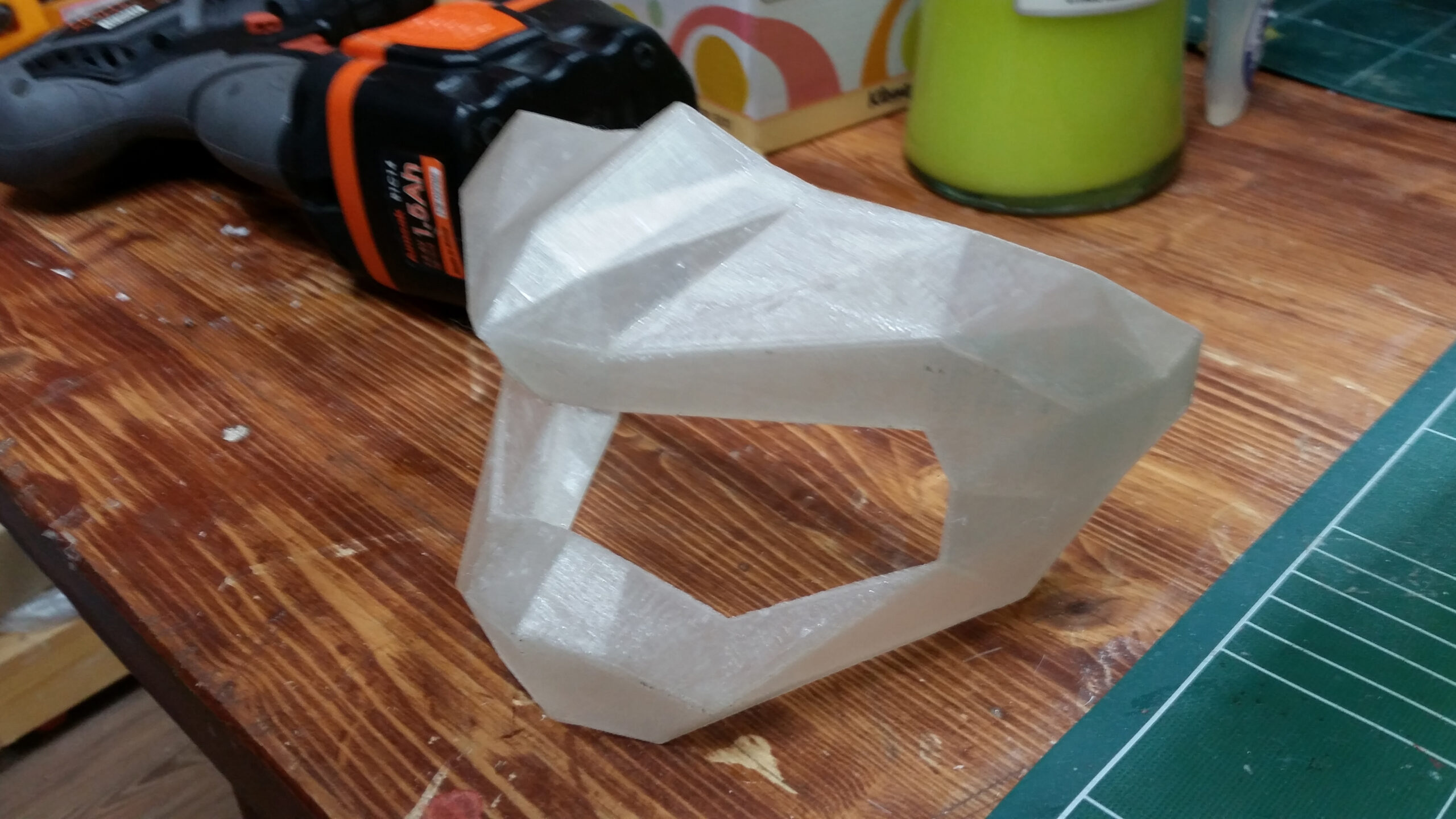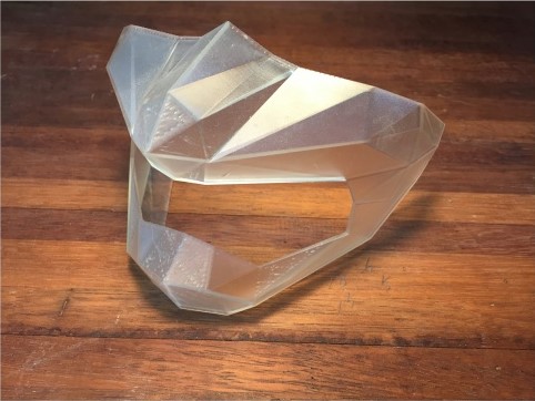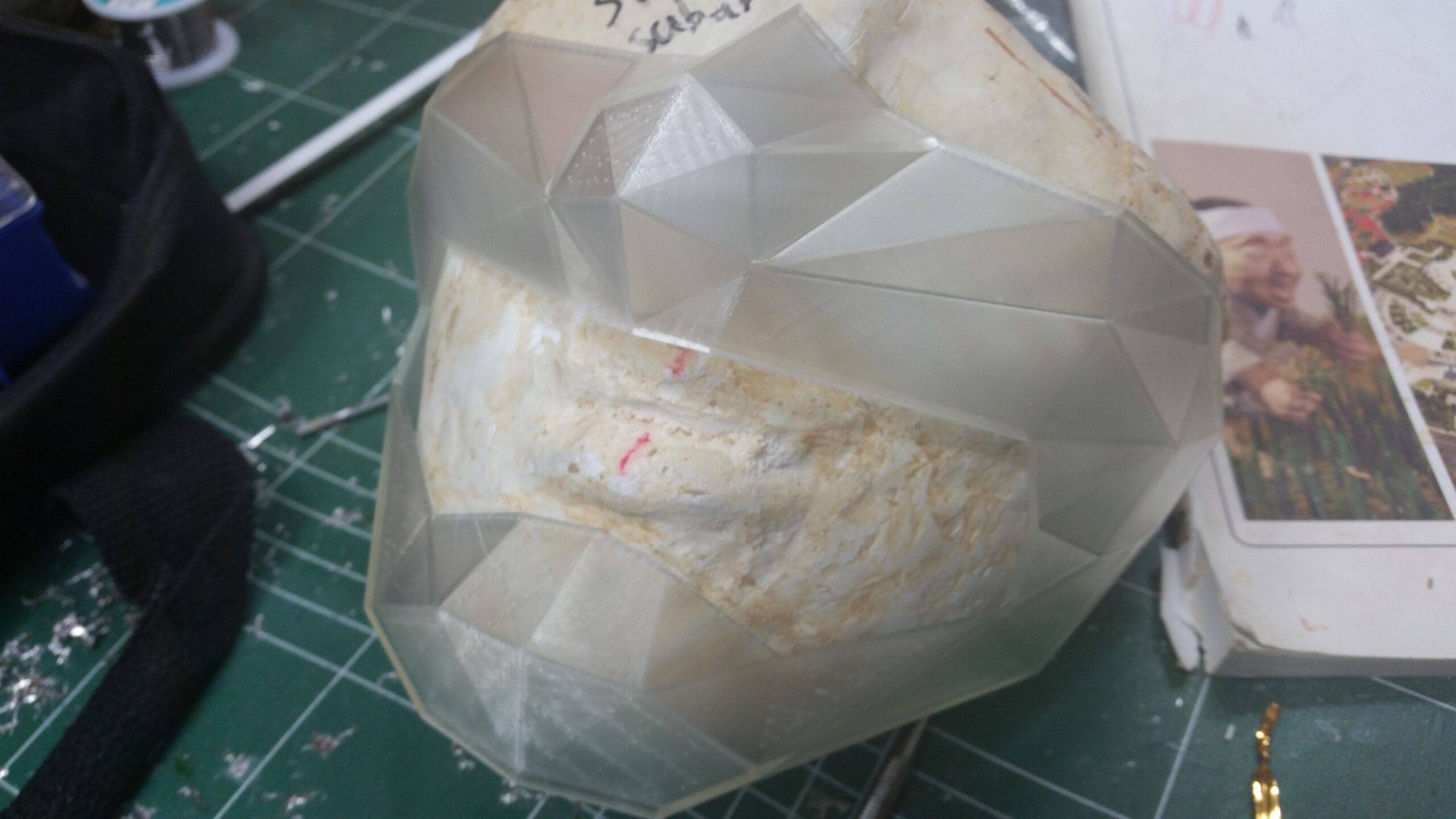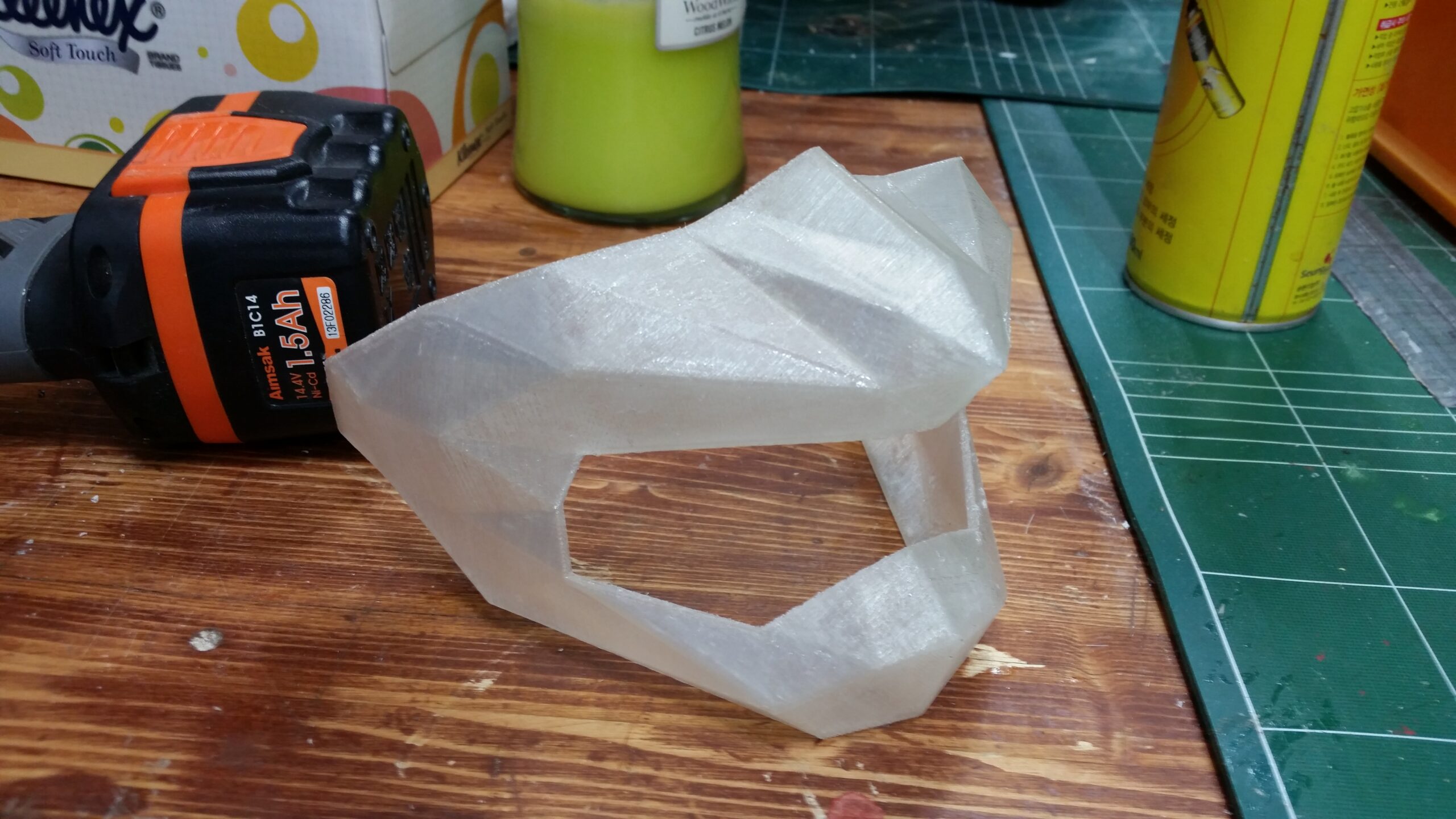 For the best fit, we compared the casted face shape, revised the files, and made several PLA masks, considering reflectivity and light transmission using transparent acrylic. Finally, I found a mask shape that felt comfortable to wear. This file was then used to print the final mask using translucent resin.